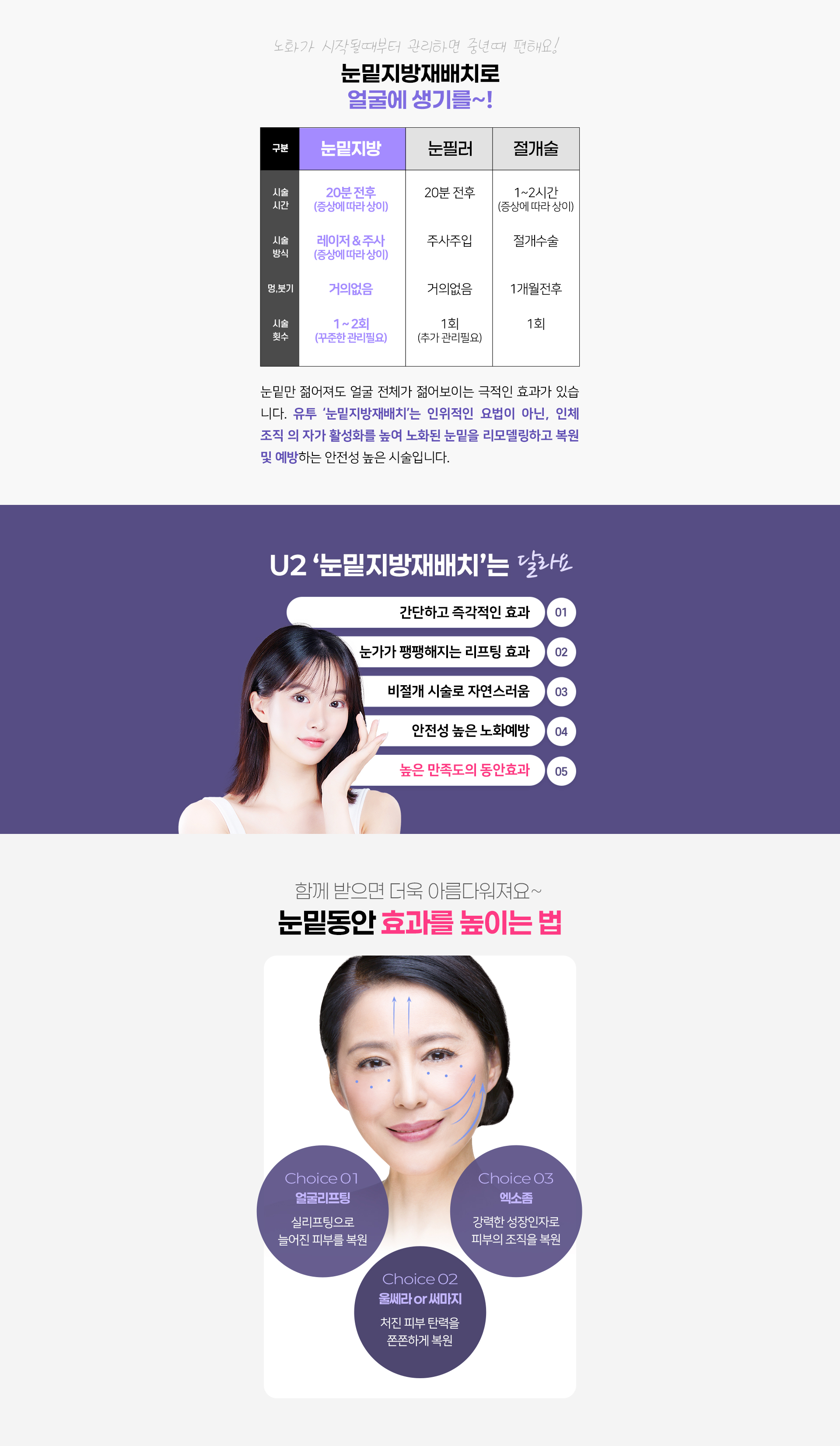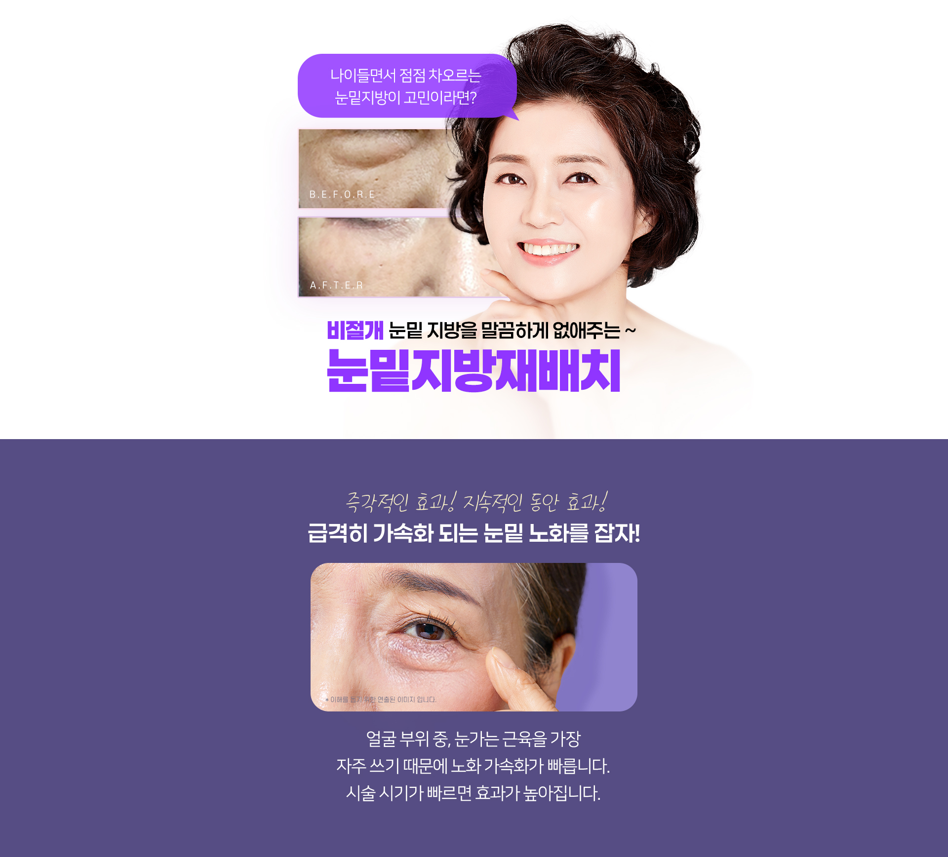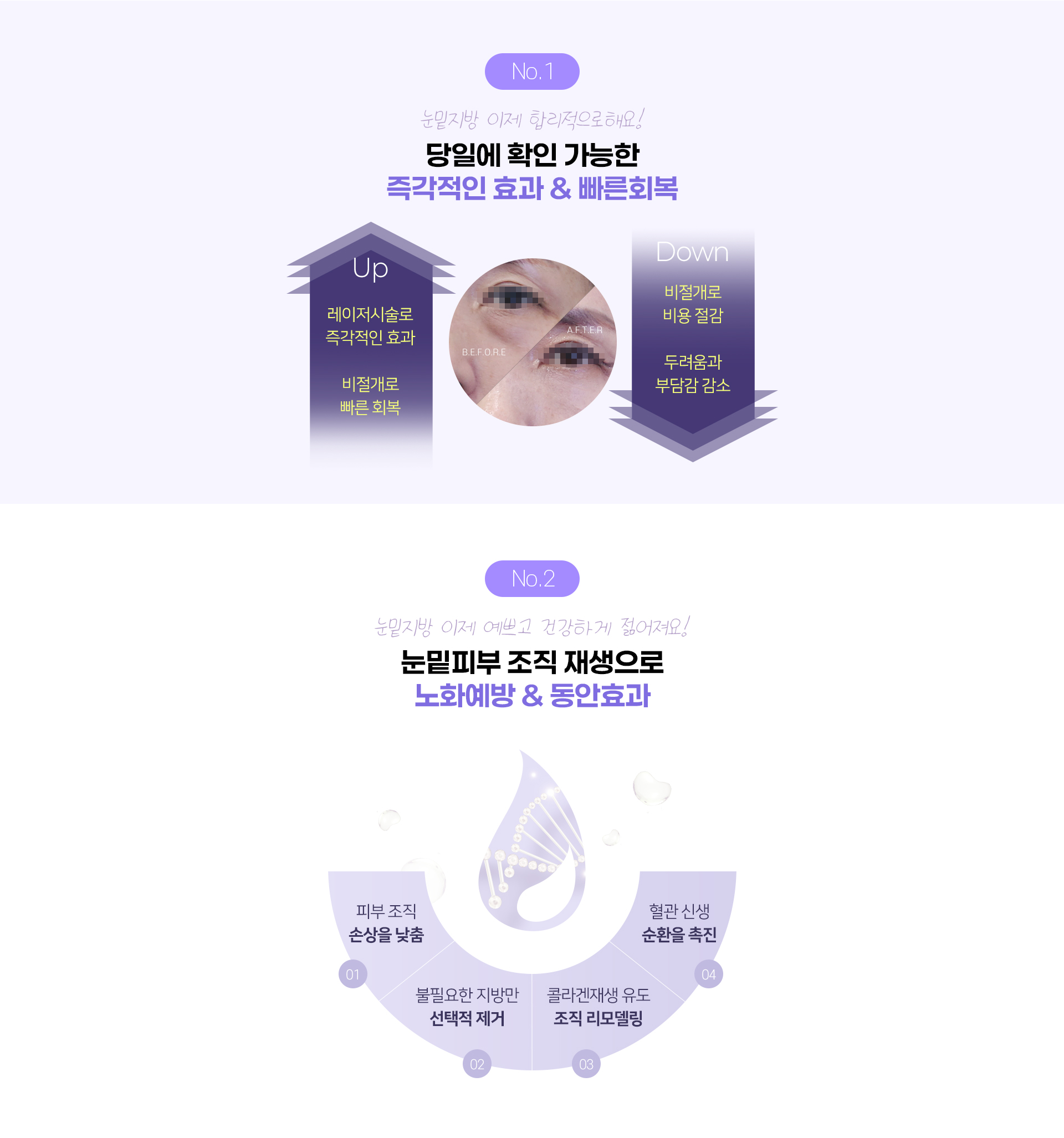 인체친화적인 특허받은 성분만 사용하여 높은 안전성을 자랑하며, 눈가 시술에 10년 이상의 풍부한 노하우를 가진 의료진이 꼼꼼하게 진료합니다.