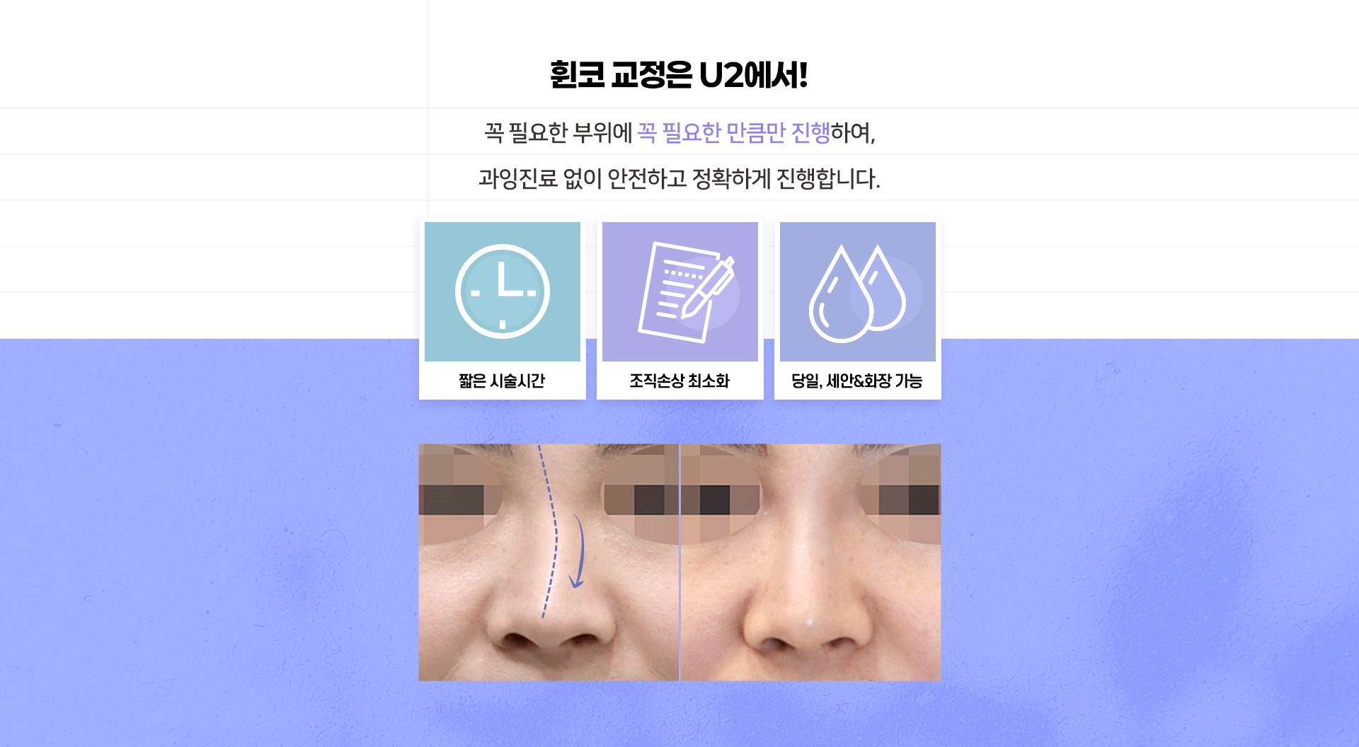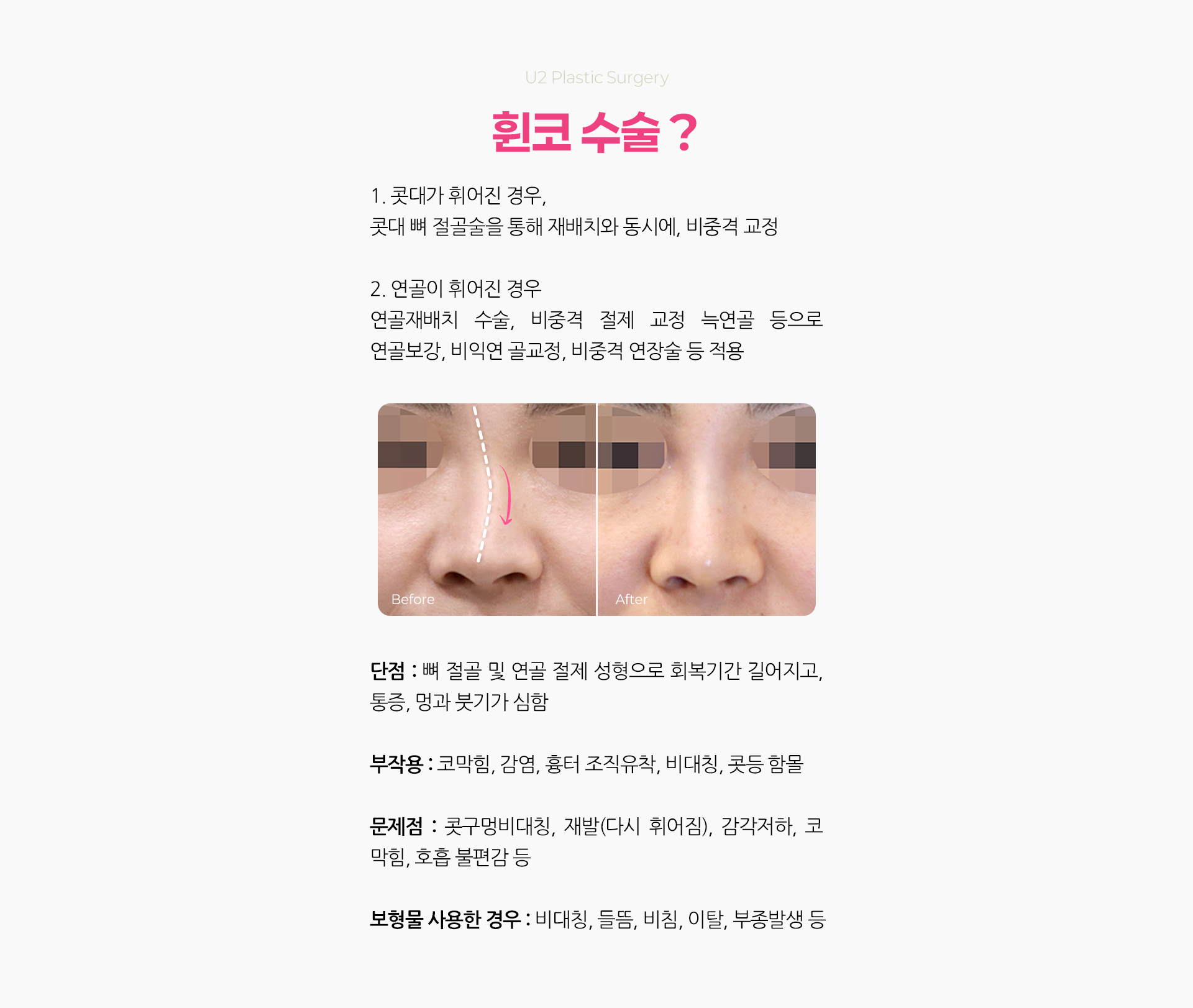 - 시술 후 코를 잡아당기는 행동도 안되며 코를 누르거나 부딪히지 말아야 하며 비비는 행동 등 조심하셔야 됩니다.