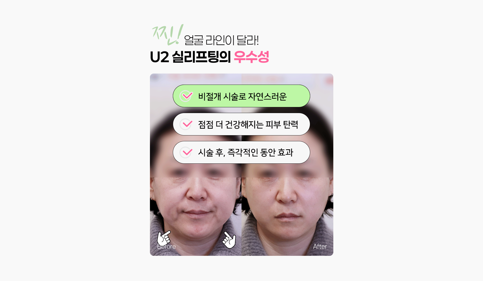피부 타입은 의료진의 정확한 소견이 필요합니다. 얇거나 두꺼워도 어떤 시술을 병행하느냐에 따라 효과를 극대화 시킬 수 있습니다. 유투성형외과에서 효과와 방안에 대해 객관적이고 정확하게 상담을 받아보세요.