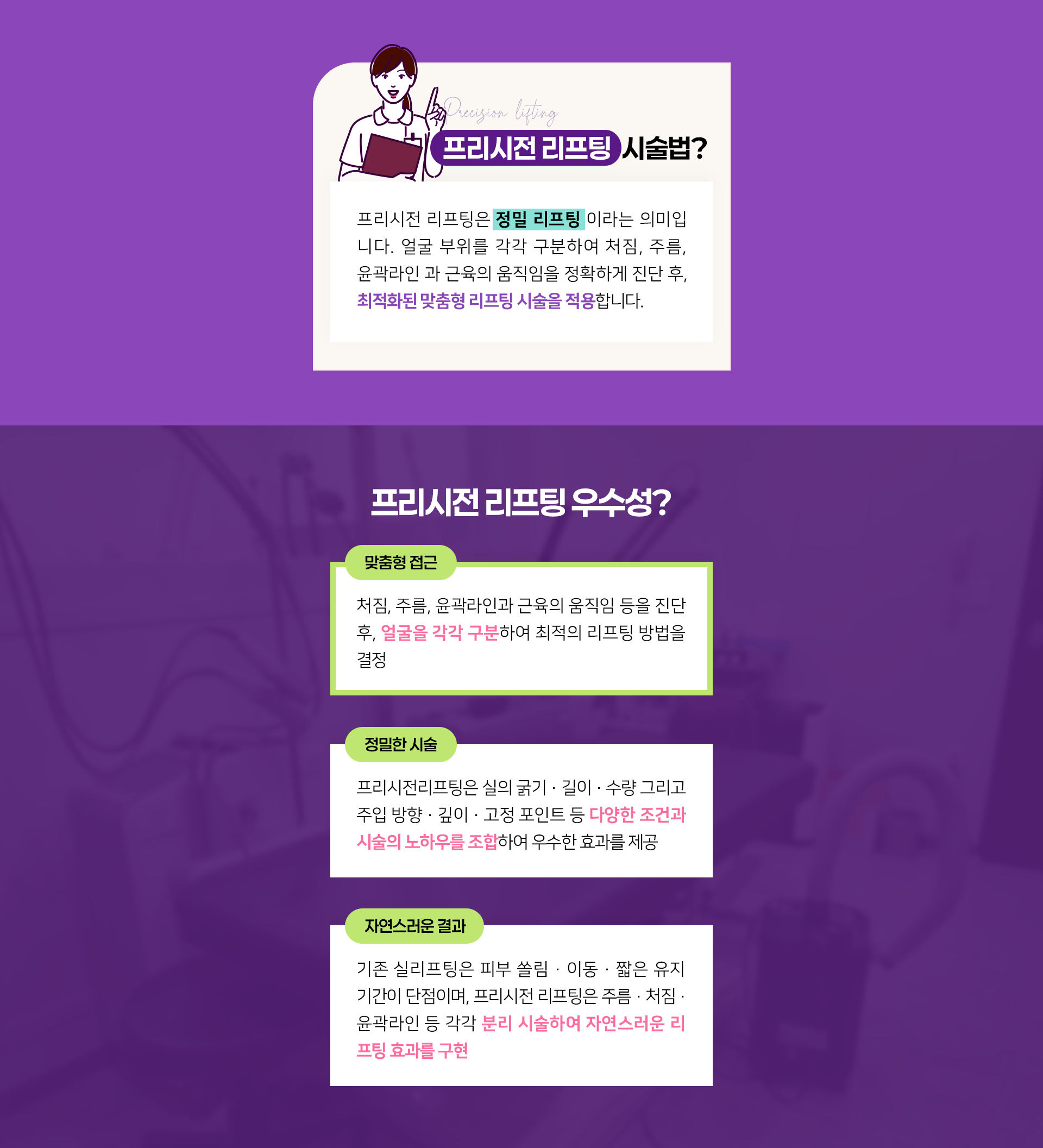 꼼꼼하게 견인하여 리프팅시키는 것이 효과적입니다.