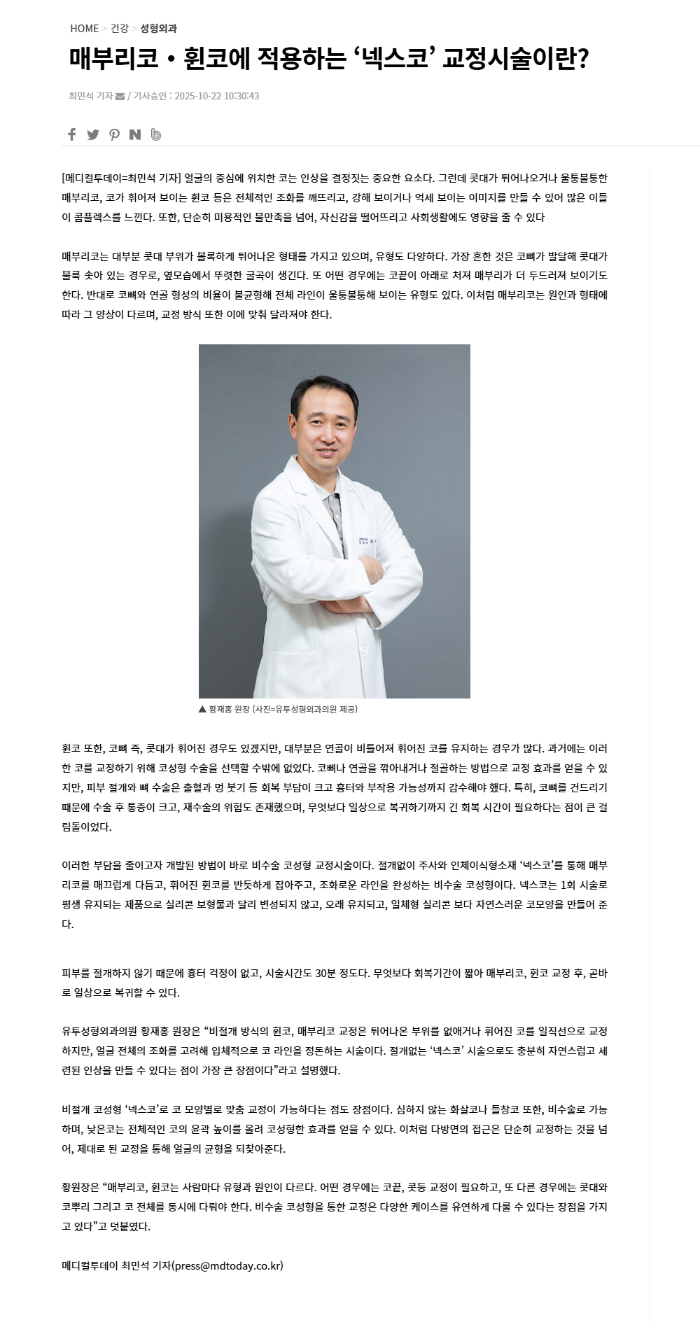 메디컬투데이 매부리코‧휜코에 적용하는 ‘넥스코’ 교정시술이란?