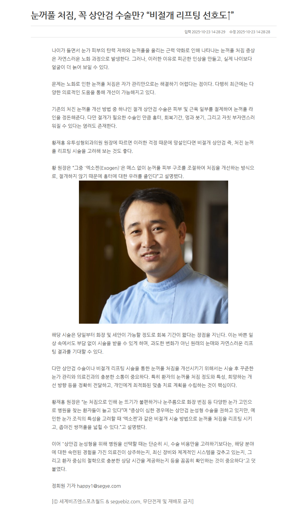 처진 눈꺼풀을 올려주는 비절개 리프팅 시술 엑소젠, 그 과정은?